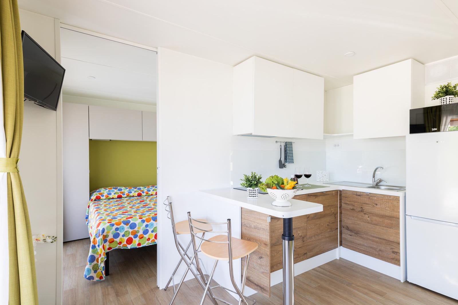 La Mobile Home è dotata di condizionatore (a pagamento). La biancheria da letto e da bagno è fornita con cambio settimanale con possibilità di cambi extra a pagamento.